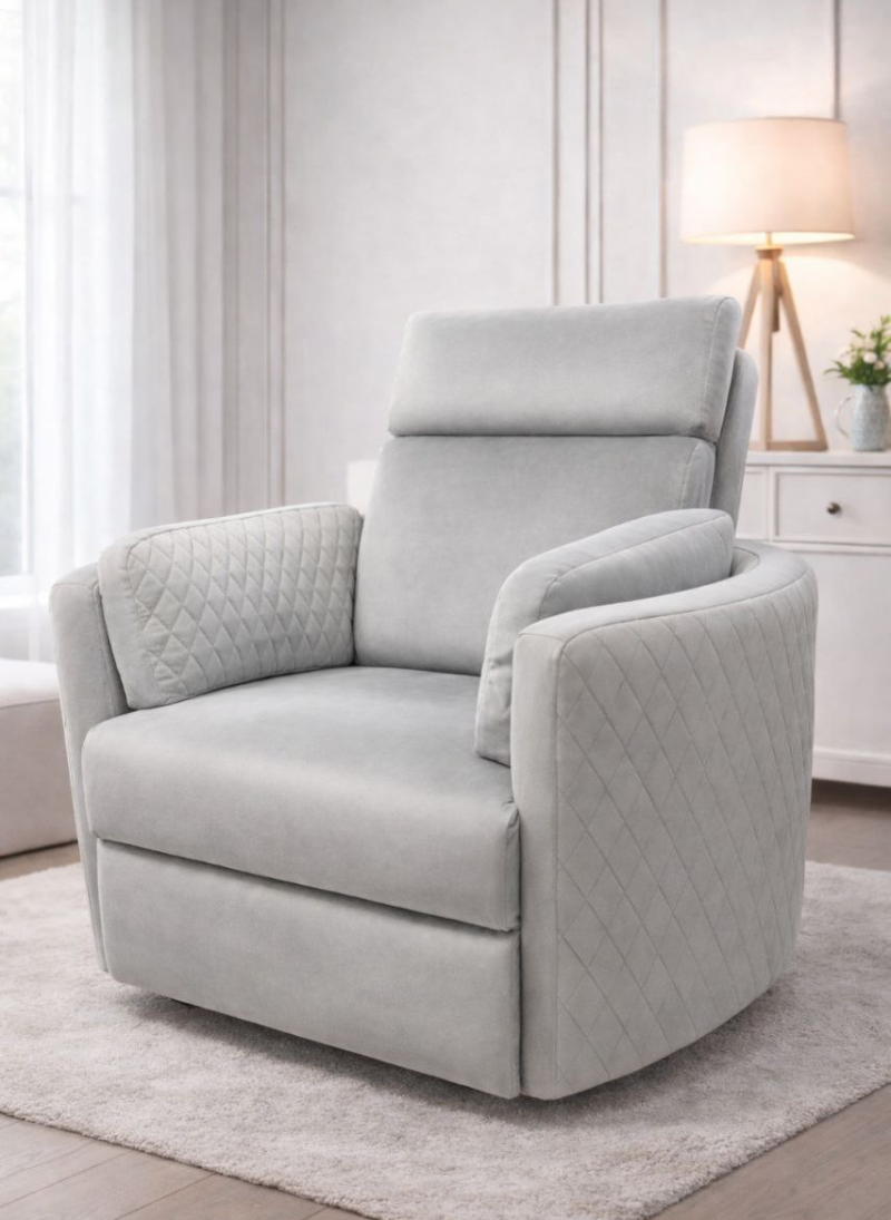 Крісло-реклайнер Bono від Ovalbed – це комфорт, стиль і функціональність в одному. Ідеальне рішення для релаксації, годування малюка, заколисування чи відпочинку після насиченого дня. Доступне з механічним або електричним реклайнером, має функцію гойдання та регульовані положення. Якісна тканина на вибір, плавне й безшумне розкладання – усе для вашого затишку.